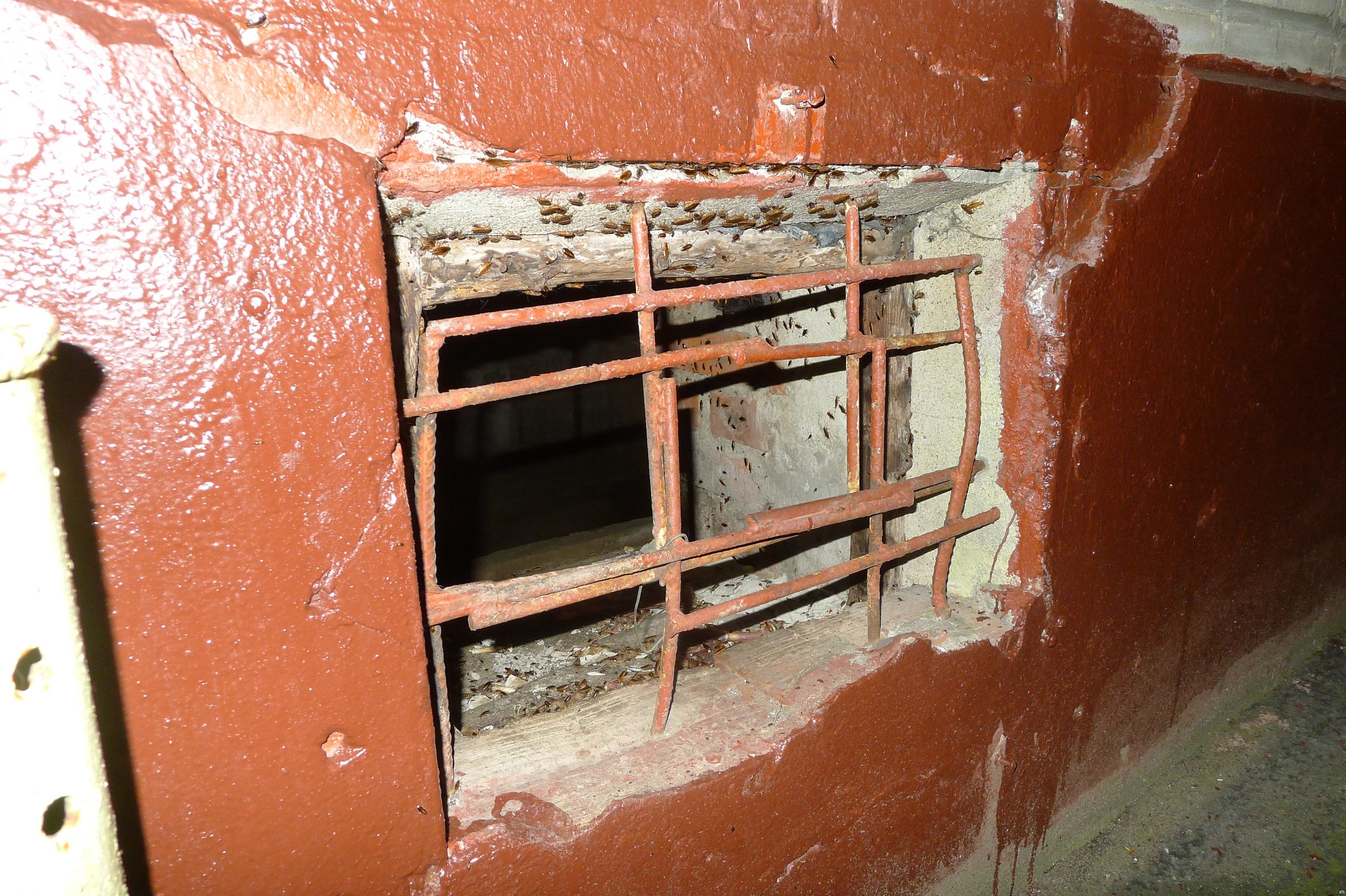 Популяция этих самых тараканов не в последнюю очередь росла за счёт того, что какие-то "сердобольные" бабульки, шосукахарактерно, из соседних (!) домов приносили "бедным бездомным кошечкам" еду и оставляли её прямо в подвальных окнах-продухах. Кошки хавчик, разумеется, никогда не сжирали полностью, органические остатки никто не убирал. В результате всё это выглядело примерно следующим образом. Кликните на фото чтобы открыть его в полном размере и оцените масштабы бедствия. Само собой, что часть вот этой обширной колонии регулярно посещала квартиру на первом этаже, где я жил.